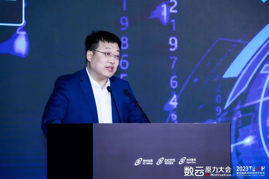 神州控股董事局主席、神州信息董事长、神州数码董事长兼首席执行官郭为在开幕式主题演讲中谈到,二十多年来,神州数码始终以数字化中国为名,在“数”、“云”领域不懈深耕,在二十多年无尽的探索中,我们走到了围绕数云融合推动数字化转型的技术发展新阶段。围绕着数据资产的累积,我们也基于数云融合的技术体系形成了很多独一无二的解决方案。