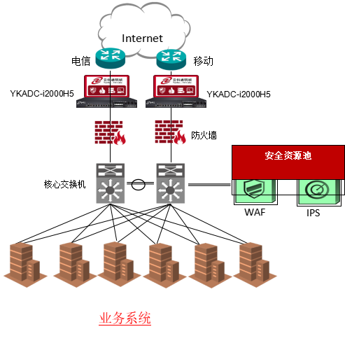 在客户业务的出口双机部署尊龙时凯通明湖应用交付控制器,并配置链路检测配置文件,若线路故障实现自动进行主备切换故障转移。